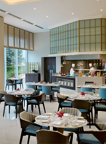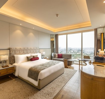 Mute The Leela Bhartiya City BengaluruNestled in an upscale ‘city within a city’ in Bengaluru’s Special Economic Zone, The Leela Bhartiya City Bengaluru stands as a beacon of refined elegance and 5-star grandeur. Strategically located near the Kempegowda International Airport, offering seamless access to the city’s vibrant IT corridor and Financial District, this luxury hotel near Bangalore Airport brings together sophistication and comfort. a distinguished 5-star hotel near KempeGowda International Airport Bangalore, it also stands among the most preferred 5-star hotels near Bangalore Airport for both business and leisure travellers.Whether for corporate meetings or milestone celebrations, The Leela Bhartiya City Bengaluru is designed to host it all — with its luxuriously appointed spacious rooms, celebrated restaurants, versatile venues including a premier Convention Centre Bangalore, and thoughtful rituals.We invite you to immerse yourself in the pulsating heart of India’s global innovation capital — right here, at The Leela Bhartiya City Bengaluru.Read more Stay & Revel Presidential Suite Luxury Suite Executive Suite Royal Club Room Premier Room Deluxe Room Curated Offers Leela DISCOVERY Member Special Stay Your Way Suite Indulgence Stay More Save More Time Travel with The Leela View All Epicurean Delights The Lotus Oriental Sushi, dim sum, and more by the infinity pool-Bangalore’s go-to for Japanese cuisine. Falak Awadh and Frontier cuisine like never before, with opulent city views that captivate the senses. Quattro Interactive dining with boulevard views, featuring unique dishes and indulgent Sunday brunches. The Library Bar Indo-Victorian charm with award-winning wines, single malts, and artisanal cocktails. The Lobby Lounge Where coffee turns into conversation and tea comes with a side of nostalgia. Relax. Unwind. Chinese New Year Celebration Celebrate with a festive menu crafted around tradition and symbolism. Beyond the Noodle A contemporary interpretation of Hakka cuisine by Chef Katherine Lim. Celebrations & Conferences CelebrationsIntimate celebrations to grand galas, making every occasion timeless. Enquire Now Factsheet MeetingsAllow us to orchestrate every detail, so your meetings flow effortlessly. Enquire Now Factsheet The Leela Bhartiya City BengaluruHotel CoordinatesHotel Address:6/2, Thanisandra Main Road, Tirumanahalli, Bengaluru 56006428 mins from Bengaluru International Airport Telephone: +91 (80) 4545 1234 Hotel Factsheet FAQs Enquire Now You must have JavaScript enabled to use this form. Name phone Phone Email Hotel*The Leela Bhartiya City Bengaluru Purpose of EventWeddingsCelebrations Need a stay?YesNo Additional Information I agree to receive updates, offers, via sms, rcs & Whatsapp. Mobile Number Enquire Now You must have JavaScript enabled to use this form. Name Phone Email Hotel*The Leela Bhartiya City Bengaluru Additional Information I agree to receive updates, offers, via sms, rcs & Whatsapp. Mobile Number